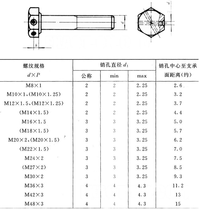 名称:六角头头部带孔螺栓-细牙-A和B级(GB/T 32.3-1988)